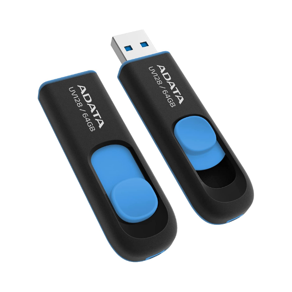 ADATA UV128 USB 3.2 Retractable Capless Blue Flash Drive