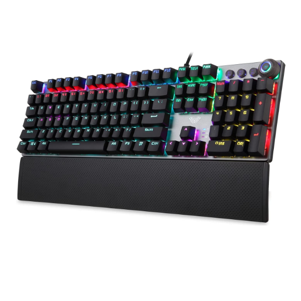 AULA F2058 Wired Mechanical Gaming Keyboard 50 Million Keylife Multimedia & Backlight Control Knob Blue Switch