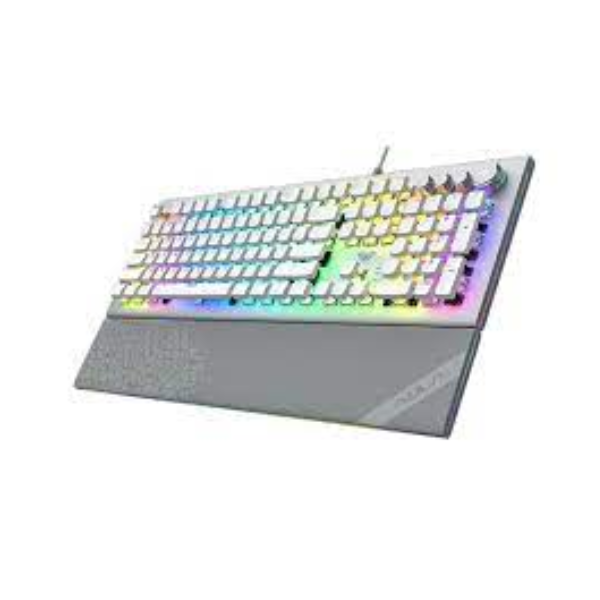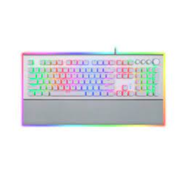 AULA L2098 RGB Mechanical Gaming Keyboard, 104 Floating-Keys Keyboard with Tactile Crystal Switches, Silver Metal Board, Magnetic Light Bar Wrist Rest Plus 4 Backlit/Media Control Knob Buttons WHITE