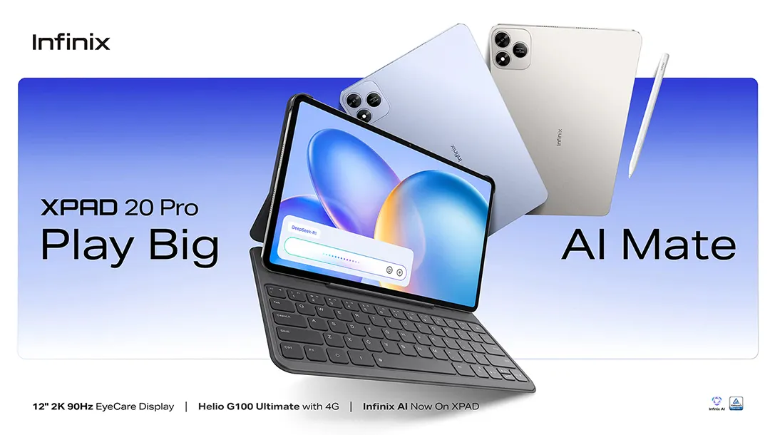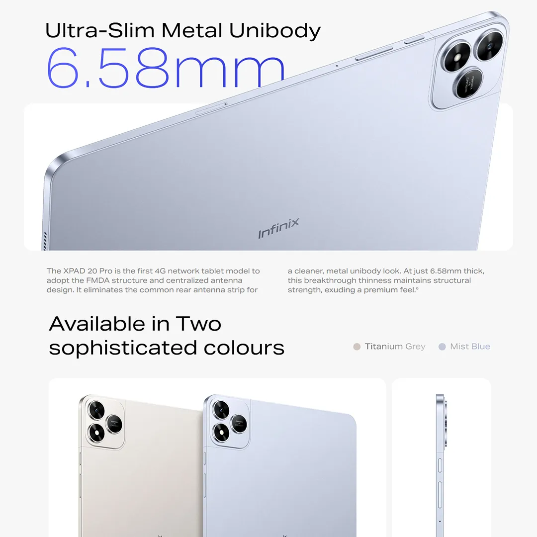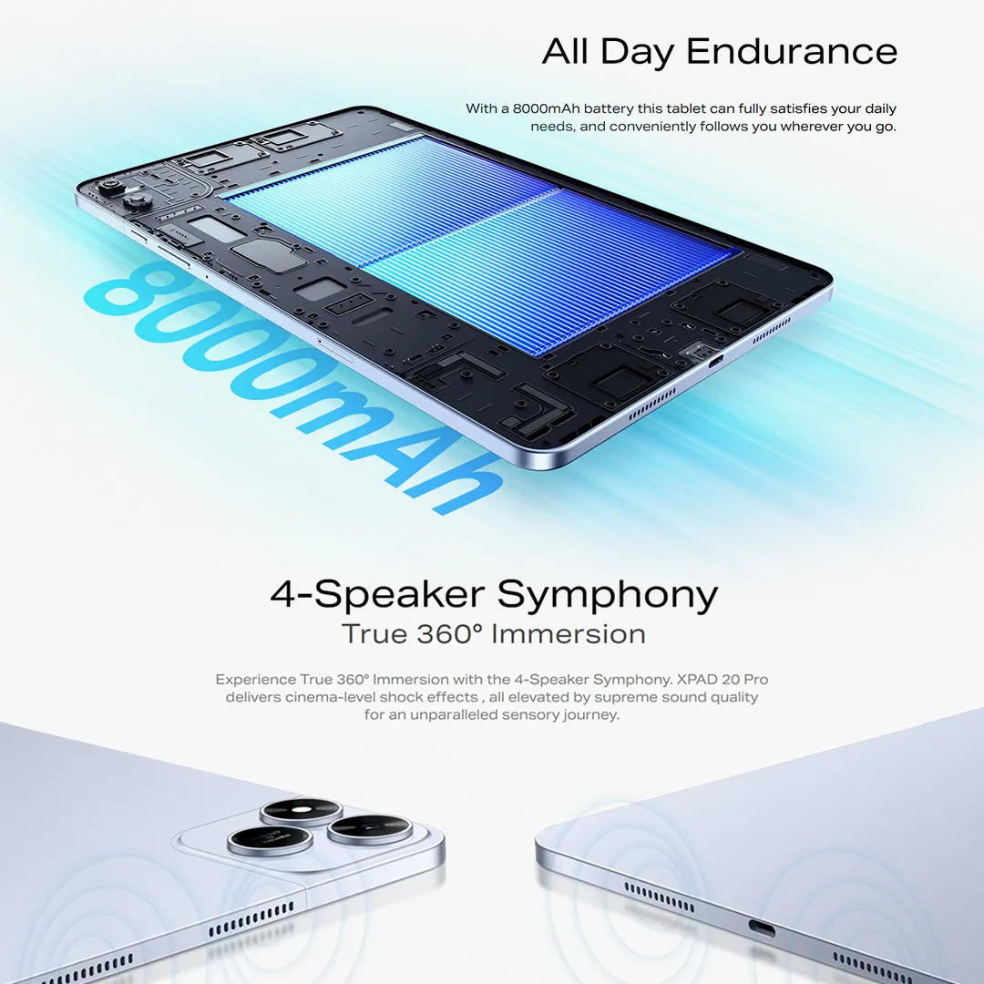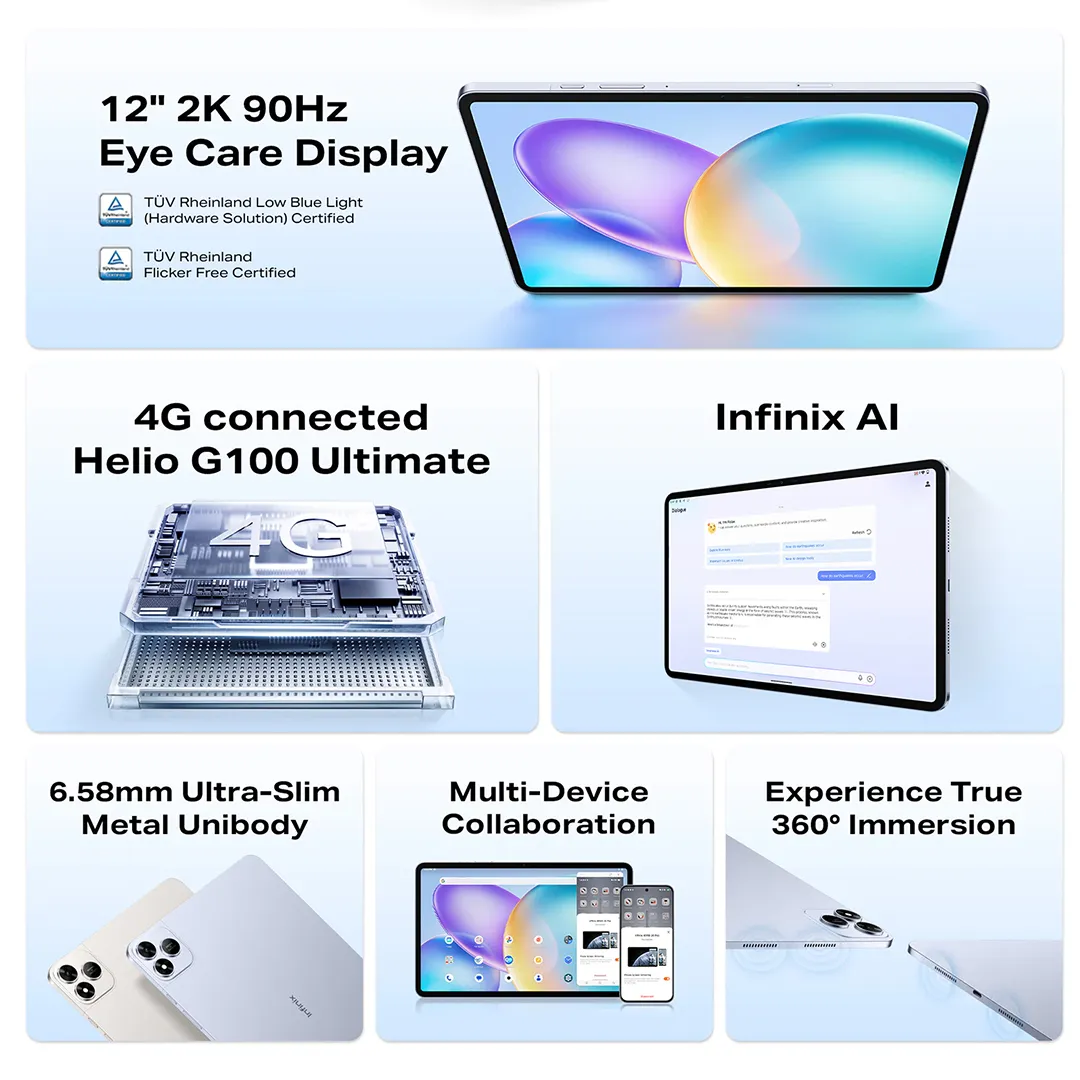 Infinix XPAD 20 Pro Mediatek Helio G100 Ultimate with 4G 12" 2K 90Hz Eye Care Display 8MP Rear Camera 8000mAh Battery with 18w Fast Charge