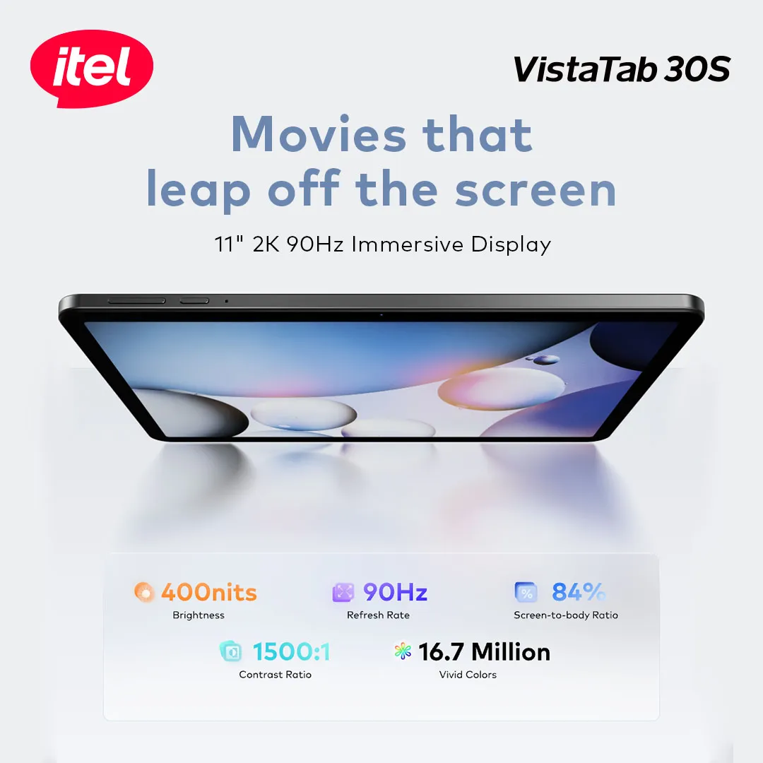 ITEL VISTA TAB 30s Mediatek Helio G88 Ultimate Processor 11" 2K 90Hz Immersive Display 8MP Main Camera 7000mAh Battery