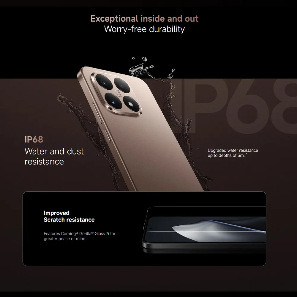 - Splash, Water and Dust Resistant: IP68
